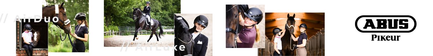 Både PIKEUR och ABUS är högt ansedda inom sina områden. Den gemensamma hjälmen AIR LUXE är en hjälm full av tekniska lösningar. För att anpassa hjälmen till de högt ställda tekniska kraven och samtidigt skapa en lätt, välventilerad och visuellt tilltalande hjälm, har man använt sig av en kombination av olika material och tekniker. Tack vare det innovativa ventilationskonceptet med intelligenta luftkanaler och sjutton ventilationsöppningar möjliggör hjälmen ett optimalt luftflöde och acklimatiserar förarens huvud med slående effekt. Det innovativa Zoom Air-justeringssystemet som är integrerat i hjälmen ger en exakt tillpassning, även i höjdled, vilket säkerställer optimal passform och säkerhet. Rymligt urtag för hästsvans eller donut. Hjälmen kommer i modellerna SUPREME, CHROME och PURE.