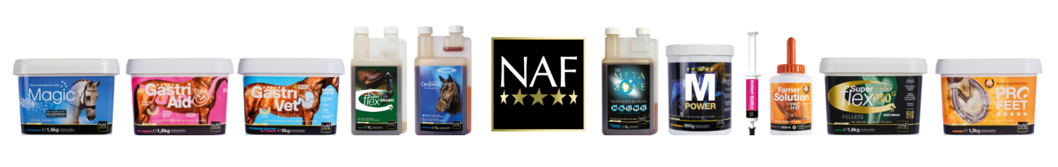 Med över 30 års erfarenhet är NAF idag Storbritanniens största fodertillskottsleverantör. NAF kombinerar det bästa från naturen med innovativ forskning till avancerade sammansättningar av fodertillskott till stöd för hästens välmående. Genom sitt breda fodertillskottssortiment har NAF tillskott för att ge förutsättningar för alla hästars välmående och hälsa. Genom en strikt kvalitetskontroll erbjuds naturliga och säkra tillskott för såväl elit som hobbyryttare.
