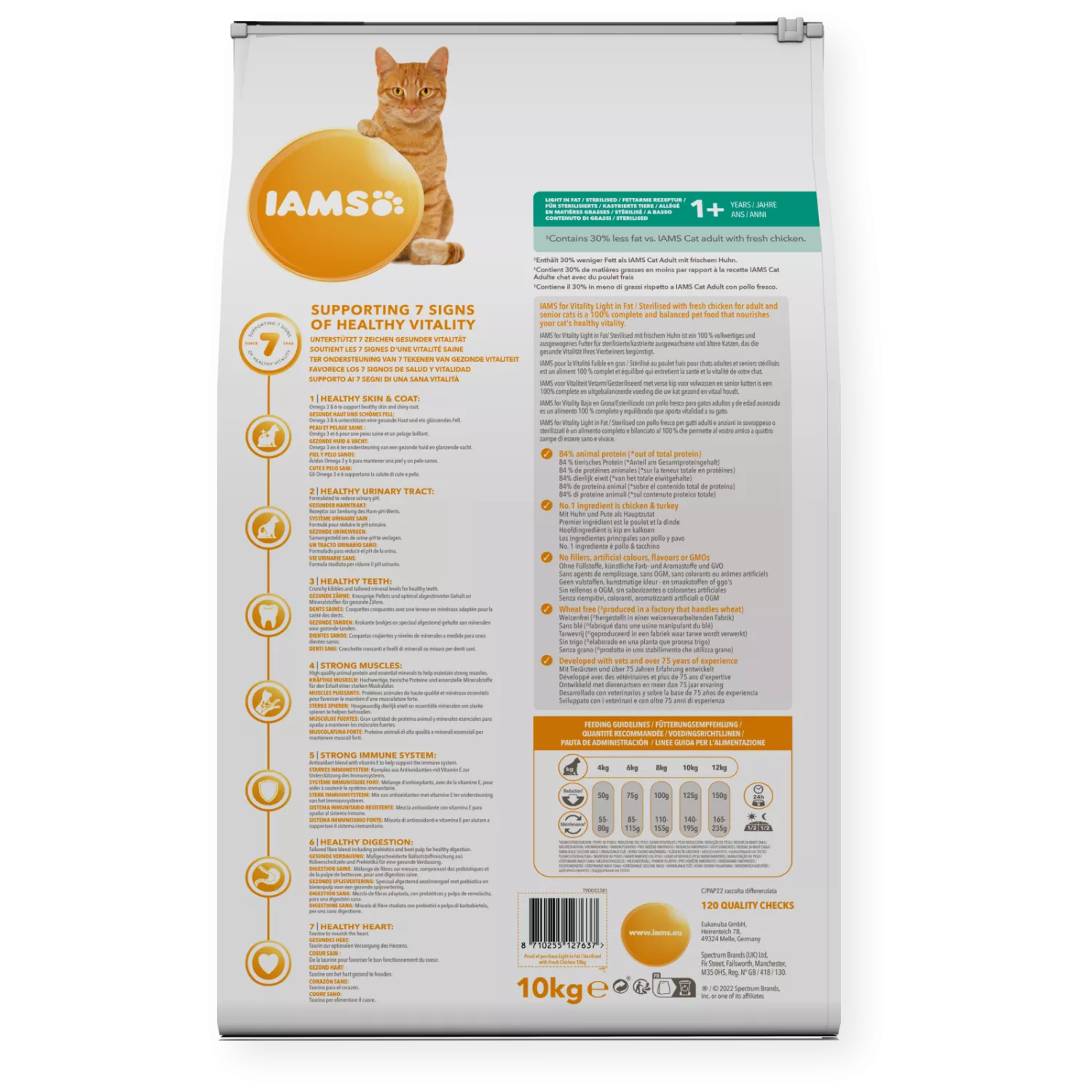 - IAMS for Vitality Light in Fat / Sterilised med färsk kyckling för vuxna och äldre katter är ett helfoder som ger näring åt kattens sunda vitalitet