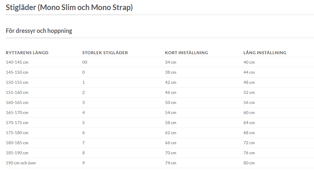 - Enkel justering av längden med spännet längst ner på stiglädret