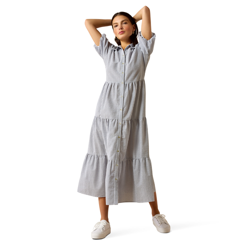 Denna feminina klänning från Ariat är definitionen av mångsidighet. Bär den knäppt och markerad i midjan med ett bälte, löst och ledigt för en avslappnad känsla, eller öppen som en tunn duster över dina favoritjeans, möjligheterna är många.