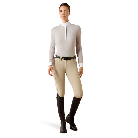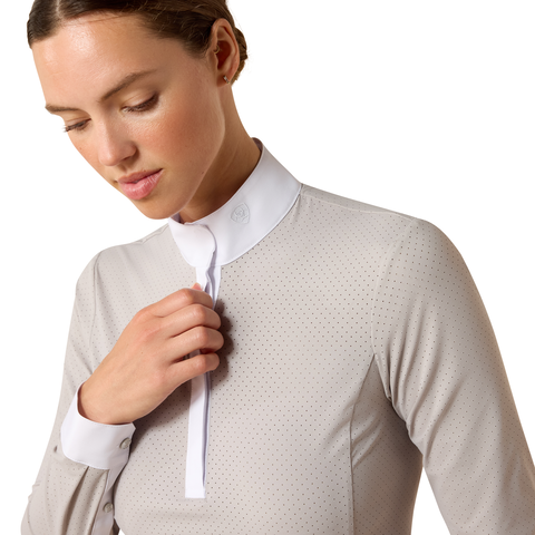 När tävlingen hettar till är Breathe Show Shirt från Ariat det självklara valet. Denna tävlingstopp är tillverkad i ett lyxigt mjukt material med diskreta mikroperforeringar som ger enastående andningsförmåga och håller dig sval även under intensiva rundor. Den eleganta designen på tävlingsskjortan kombinerar funktion och stil, vilket gör den till ett måste i varje tävlingsryttares garderob, oavsett disciplin.