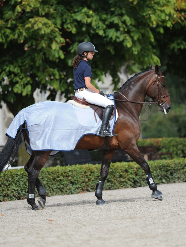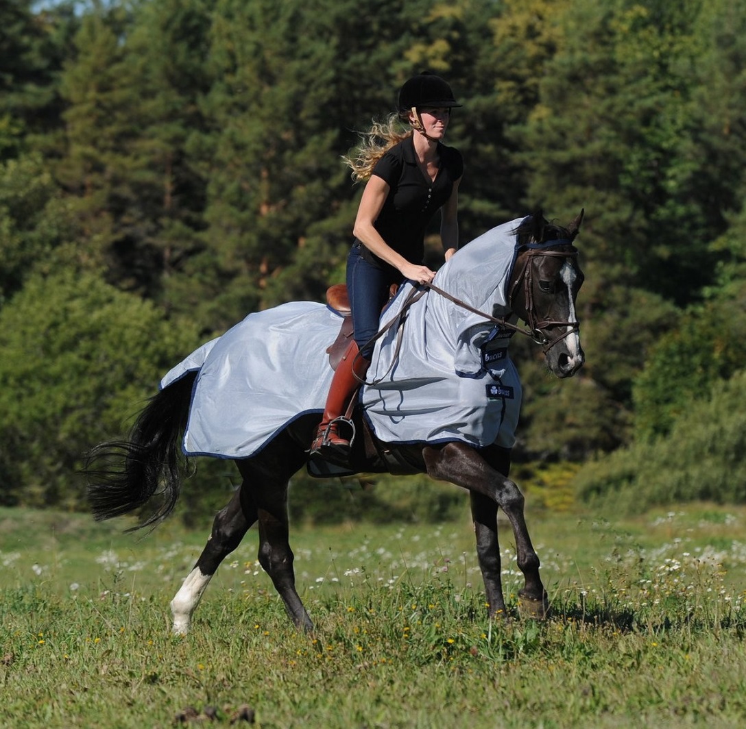 Riktigt bra ridflugtäcke i mesh från Bucas. Detta Buzz off kommer i två separata delar så du kan välja om du vill ha det bara som ländtäcke eller som mer heltäckande med halsdelen till.