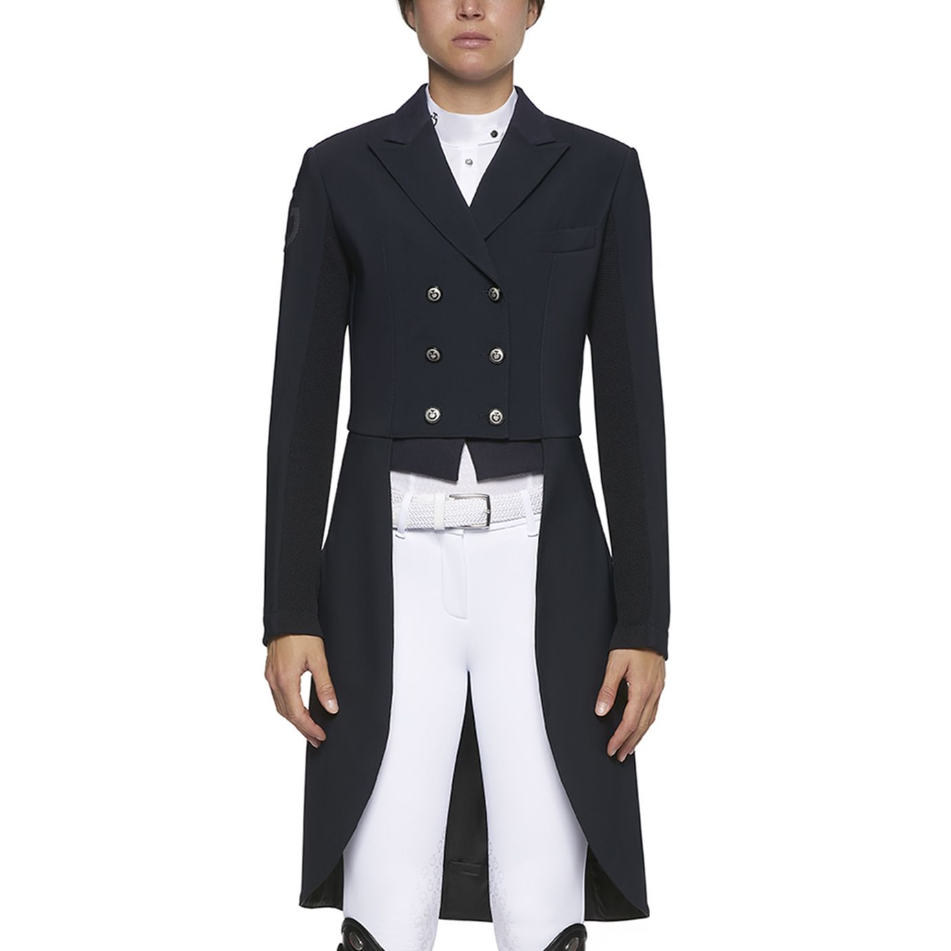 Cavalleria Toscana Tech Knit Frack är en exklusiv dressyrfrack framtagen för ryttare som vill kombinera klassisk elegans med modern funktionalitet. Fracken är tillverkad i ett tekniskt 4-vägsstretchmaterial som ger en följsam och bekväm passform utan att kompromissa med rörelsefriheten. Materialet är inte bara elastiskt, utan också andningsbart, snabbtorkande och vattenavvisande, vilket gör den idealisk även vid tävling i varmare klimat eller utmanande väderförhållanden.