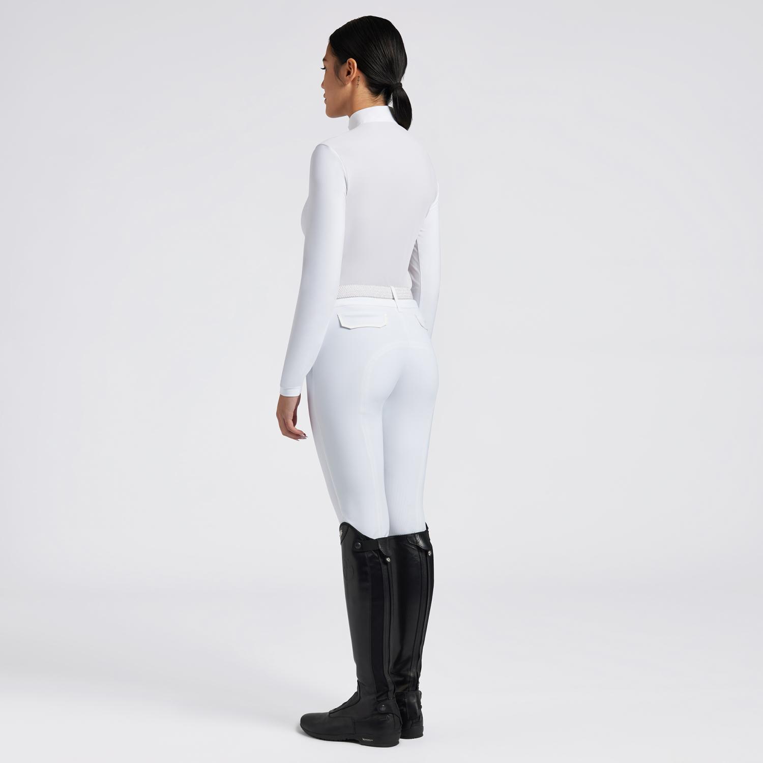 Fantastiskt härlig tävlingsskjorta från Cavalleria Toscana. Det är en långärmad tävlingsblus i ett funktionsmaterial med mjuk borstad insida i bomull för extra värme under hösten och vintern.