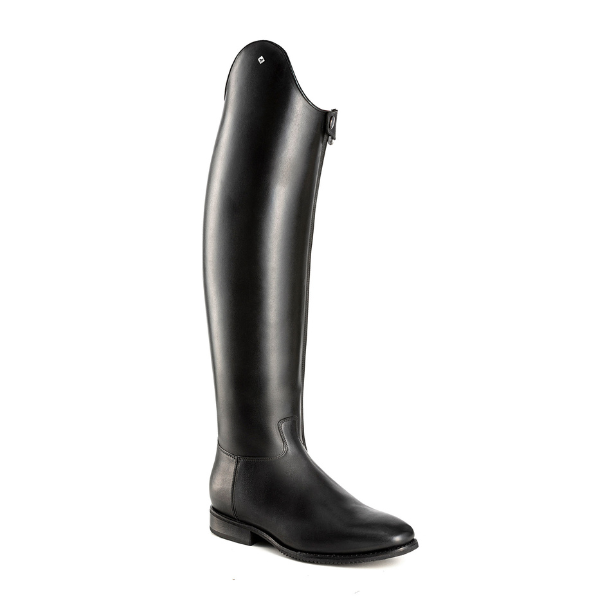 De Niro Giotto är en klassisk och stilren dressyrstövel i kalvskinn. Hård utsida, hög båge och dragkedja på insidan av vaden.