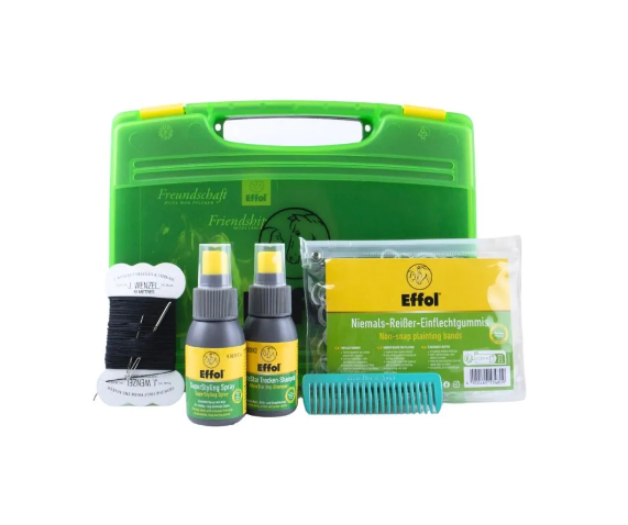 Effol Complete Braiding Kit är det ultimata flätkitet och knoppkitet för dig som vill skapa professionella och hållbara flätor i man och svans, oavsett om det är till vardags i stallet eller inför tävling. Allt du behöver finns samlat i en praktisk och kompakt förvaringsväska som håller dina verktyg organiserade och redo att användas när det är dags att fixa tävlingslooken.
