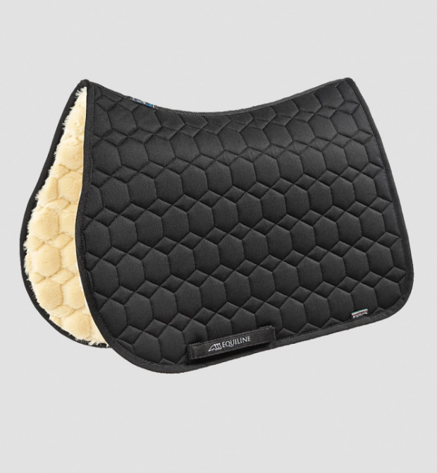 Hoppschabrak från Equiline med allergivänligt och antibakteriellt ytterskikt av bomull och mjukt quiltat ekologiskt foder i konstfårskinn. 450 g vaddering ger detta schabrak maximal andningsförmåga (ACS2) och bra stötdämpning. Det konstgjorda fårskinnet är fantastiskt bra på skavskängsliga hästar och under fällningsperioder när de kan vara extra ömma om huden och pälsen. Snyggt quiltning i form av Exatron mönster.