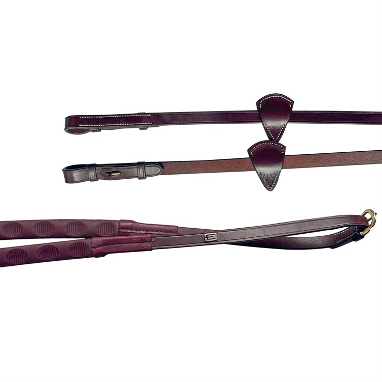 Gummityglar i exklusivt italienskt läder och vita sömmar. Martingalstroppar med vit söm och spännen i mässing. Gummidelen på tyglarna har bekväma, räfflade nedsänkningar för stadig tygelfattning. Lyxig E-logga som pricken över I:et.