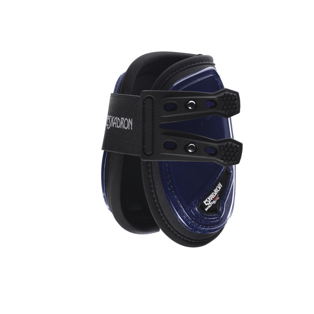 Benskyddet fästs med en elastisk textilrem med bred anläggningsyta, vilket ger jämnt tryck och hög komfort. Den tredubbelt justerbara metallknappsstängningen gör det enkelt att anpassa passformen exakt efter hästens ben. Ett utmärkt val för både träning och tävling där funktion, hållbarhet och Eskadrons välkända kvalitet står i fokus.