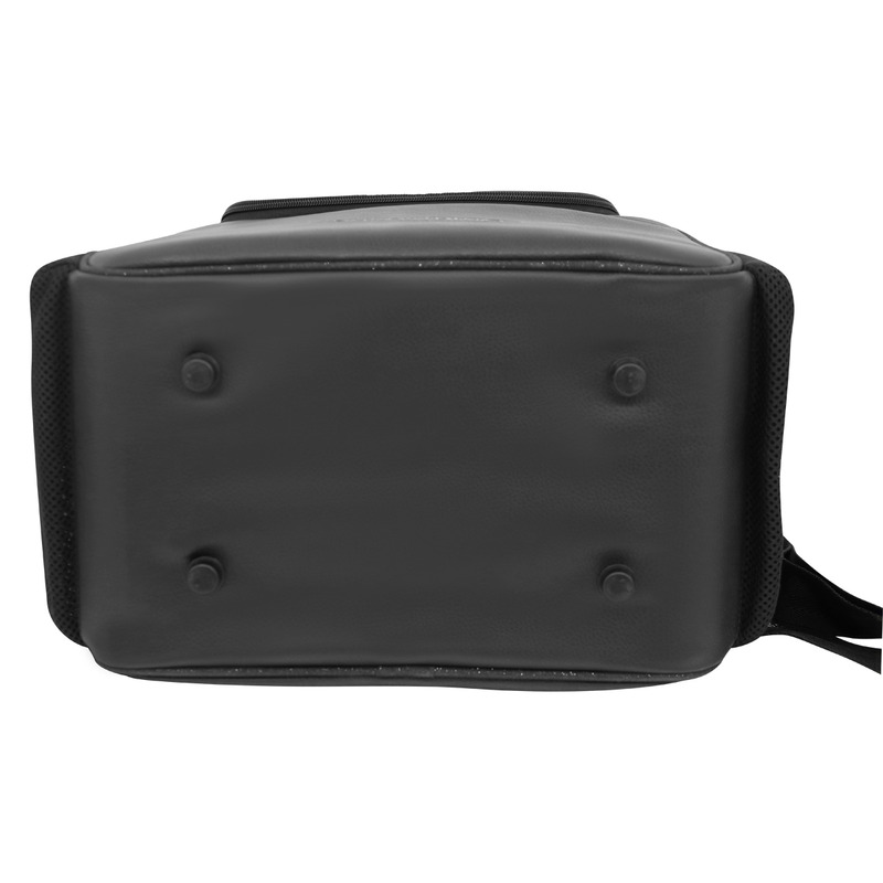 De slitstarka plastfötterna i botten skyddar väskan mot smuts och fukt, och den mjukt vadderade, längdjusterbara och avtagbara axelremmen gör den bekväm att bära. Denna ryktväska med utsida i konstlädewr, glittrande piping på kanterna och en diskret Euroriding logga tryckt på locket.