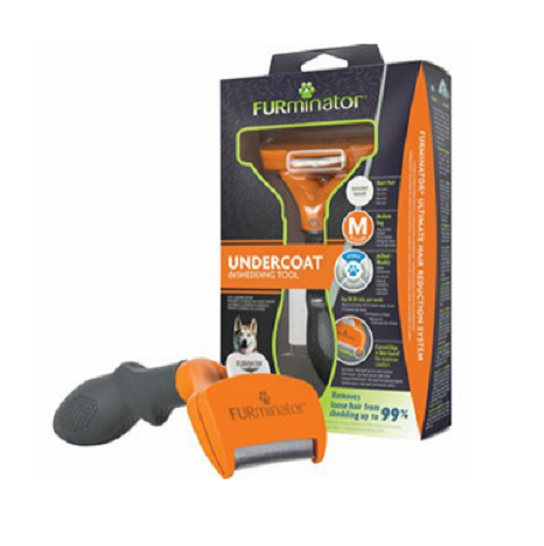 FURminator underullskam short hair är en underullskarda för hundar med kort päls och dubbla pälslager. Kammen eller kardan är suverän för borttagning av lösa hårstrån, fällande päls, tovor och hårtussar. Kardan kommer ner genom täckhåren och borstar ur lös päls utan att skada täckhåren eller riva i huden. Pälskardan är gjord i rostfritt stål samt materialet skin guard som glider över huden utan att riskera att den fastnar i hudveck. Den har en mjukt böjd form som följer hundens kroppsform. Underullskardan borstar varsamt igenom pälsen kammar med sig hudavlagring och gammalt hår för att hålla pälsen frisk och välmående. Den har ett ergonomiskt handtag med en smidig knapp som enkelt avlägsnar pälsen från borsten.