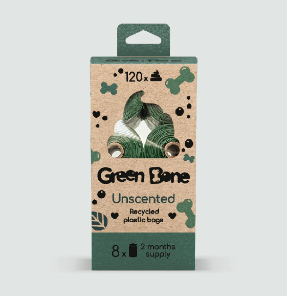 Upptäck Green Bones bajspåsar, det perfekta valet för den miljömedvetna hundägaren. Dessa kommer i en förpackning om 120 påsar, helt utan doft.