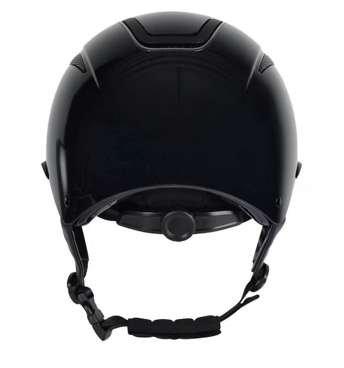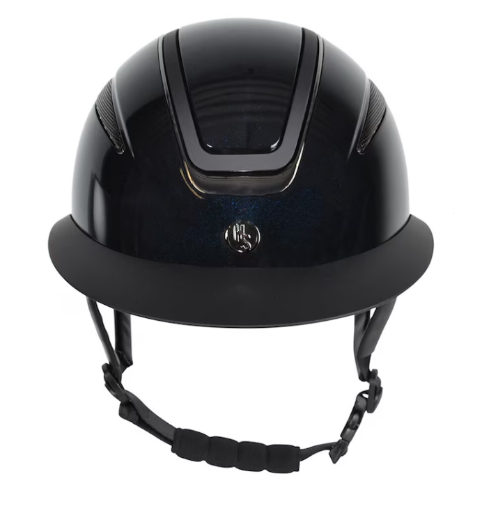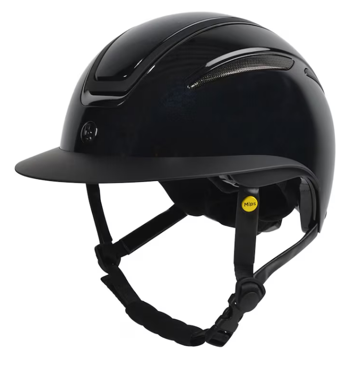 Hansbo Sport Mips Air Ridhjälm har en elegant bred och matt solskärm, glansig panel kantad av en stilfull cromad matt ram i symbios med glansig omringande detalj. Svart färg, med blå-glittrande underton likt en stjärnhimmel. Designad med fyra funktionella ventilationsöppningar. Justerbart hakband med detaljer av syntetiskt läder och praktiskt snabbspänne. Avtagbart vadderat innerfoder av Cooldry - material, torkar snabbt och håller huvudet svalt under hela ridpasset. Justerbart huvudband för optimal passform.