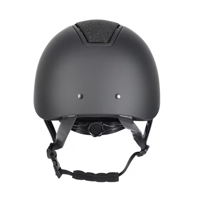 Ridhjälm med implementerat Mips-system. Stilren hjälm med bred skärm, matt yta, panel dekorerad med svart glitter och totalt sex ventilationsöppningar. Hakband med trepunktsfästen i syntetiskt läder, snabbspänne och en mjuk tunnel av Cooldry-material. För optimal passform justeras storleken enkelt baktill med hjälp av rattsystemet och det justerbara hakbandet. Avtagbart innerfoder av Cooldry-material som torkar snabbt och håller huvudet svalt, tvättas i maskin vid 40°C