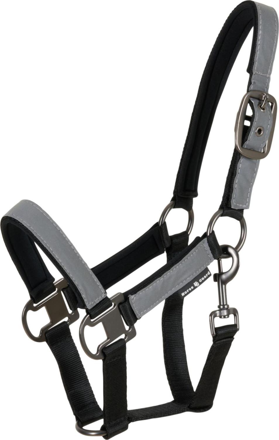 HorseGuard Totally Refleks Grimma är en smart grimma speciellt framtagen för att öka synligheten och säkerheten när du rör dig med hästen i dunkelt ljus eller mörker. Den är tillverkad av slitstarkt nylonmaterial som är täckt med reflekterande yta, så att grimman fångar ljus och lyser till när strålkastare eller ficklampor träffar den. Grimman har vadderade neoprenpartier vid nosband och huvudstycke för komfort mot hästens hud och huvud, och är justerbar både vid nackstycket och vid nosen för att passa olika huvudstorlekar. Spännena är placerade strategiskt för enkel på- och avtagning, och konstruktionen är robust men ändå lagom lätt för att inte kännas tung eller otymplig.