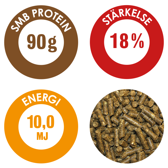 Ett färdigfoder i pelletsform med medelhög nivå av protein och energi