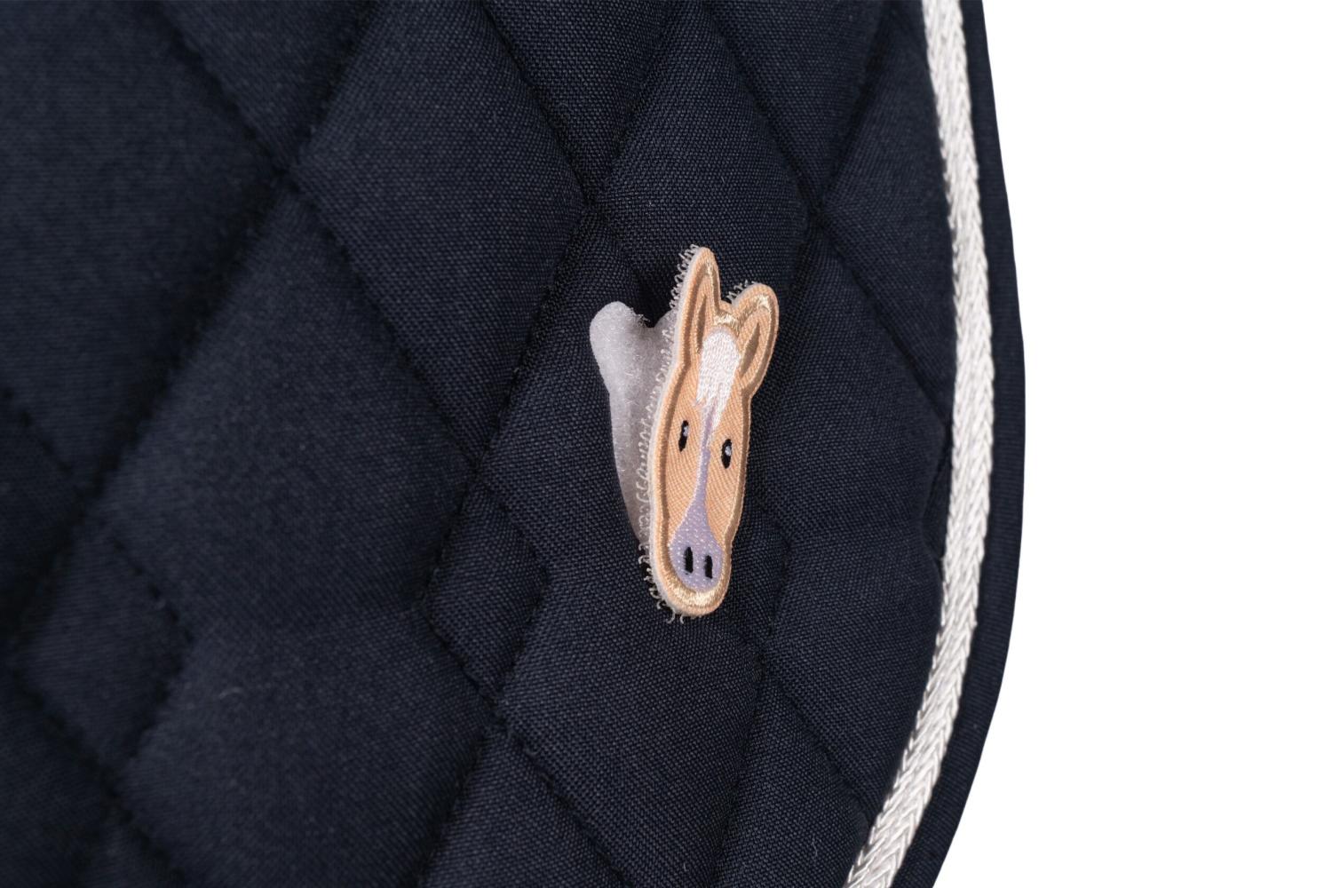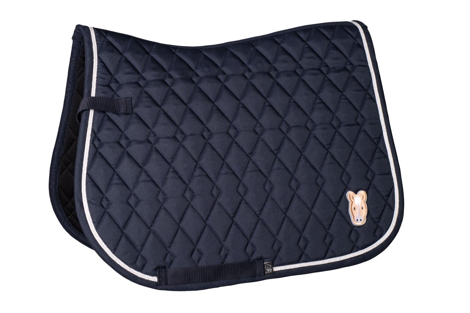 Detta schabrak för shettis och ponny kombinerar funktion med en lekfull och personlig design. Det är utformat för att ge en bekväm passform för mindre hästar och passar lika bra vid vardaglig ridning som vid träning. Tack vare sin genomtänkta konstruktion ligger det stabilt under sadeln och bidrar till god komfort för hästen.