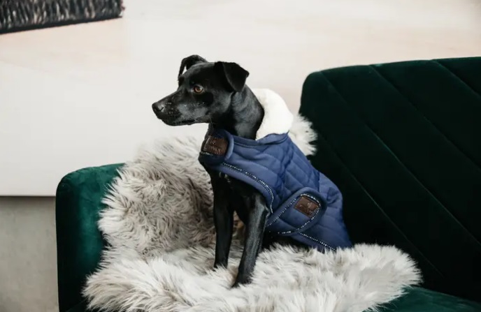 Horisontell quiltning & pärlpassage - Konstgjord kaninskinnsfoder och 160g fyllning för extra värme - Konstgjord fårskinn på halsen - Krok- och ögleförslutningar på bröst och mage - Tvättbar i maskin. blickfång. De varma och hållbara materialen håller din hund varm i alla typer av vinterväder. Tyger & material Kappan har en fyllning på 160g och har ett konstgjort foder av kaninskinn. Detta foder är mycket mjukt, bekvämt och fungerar som ett extra isolerande lager. Huvan på hundkappan är gjord av konstgjort fårskinn. Detta är ett mycket mjukt och varmt tyg för att skapa en mysig effekt. Den snygga kappan har en unik horisontell quiltning och är gjord av material som andas (43 % nylon, 43 % polyester och 14 % spandex). Detta tyg är stretchigt för att ge en ännu bättre form, och därmed ännu mer komfort, till din hund. De fantastiska passpoalerna är gjorda av pärlor, som är ordentligt fastsatta i pälsen. Form & storlek Hundrocken är försedd med kardborre stängning på framsidan och magen. Förslutningarna är avslutade med konstläderlappar. Den konstgjorda fårskinnshuvan kan vikas tillbaka över halsen för extra täckning. Vårdguide Hundrockspärlorna kan tvättas i maskin i 30°. För att skydda kappan i tvättmaskinen råder vi dig att stänga kardborrebanden och lägga kappan i en tvättpåse. Låt pälsen torka naturligt. Förslutningarna är avslutade med konstläderlappar. Den konstgjorda fårskinnshuvan kan vikas tillbaka över halsen för extra komfort.