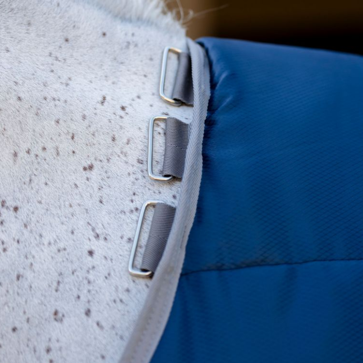 Täcket knäpps med dubbla bogspännen, två maggjordar och svansrem. Täcket har 200 g fyllning och är lätt och smidigt.