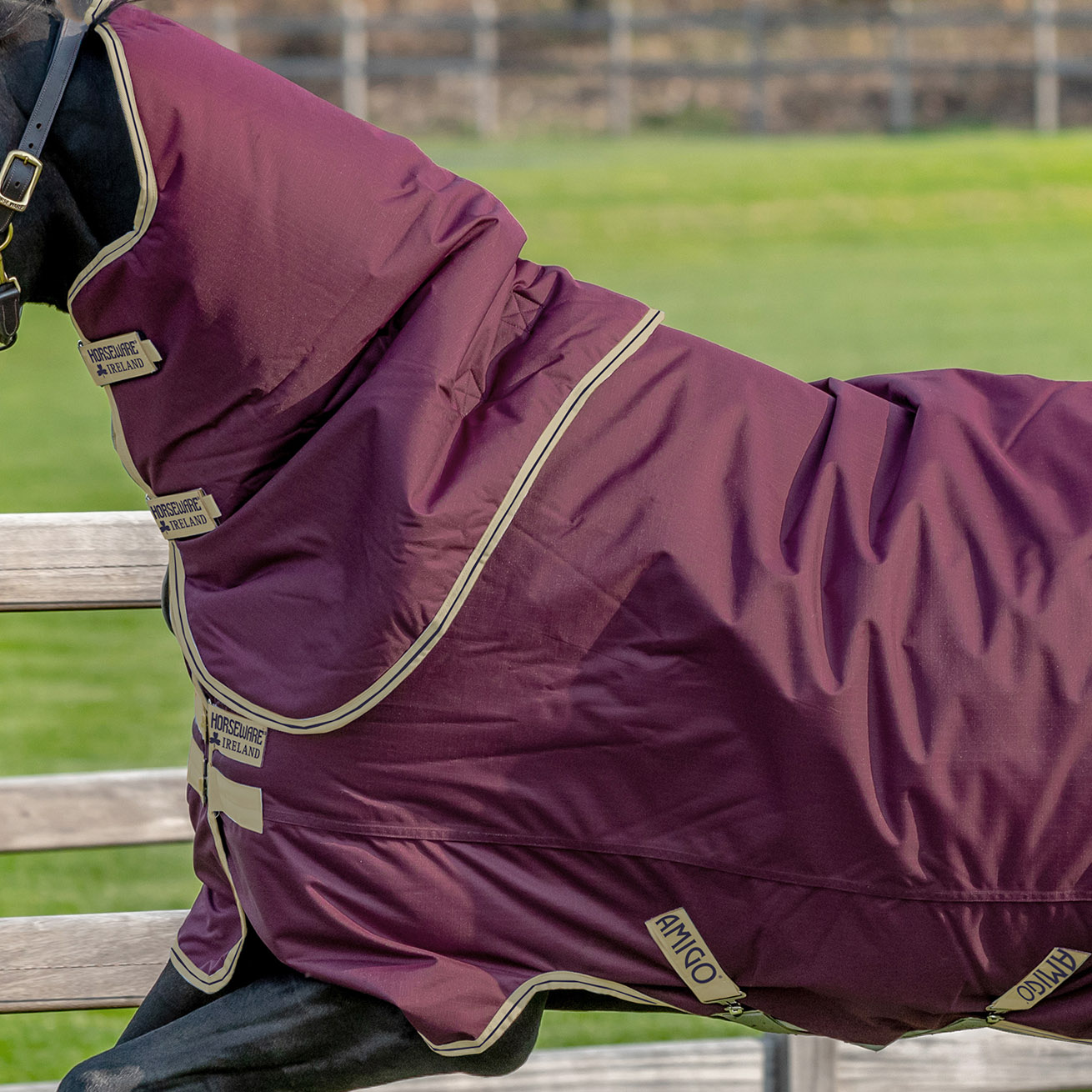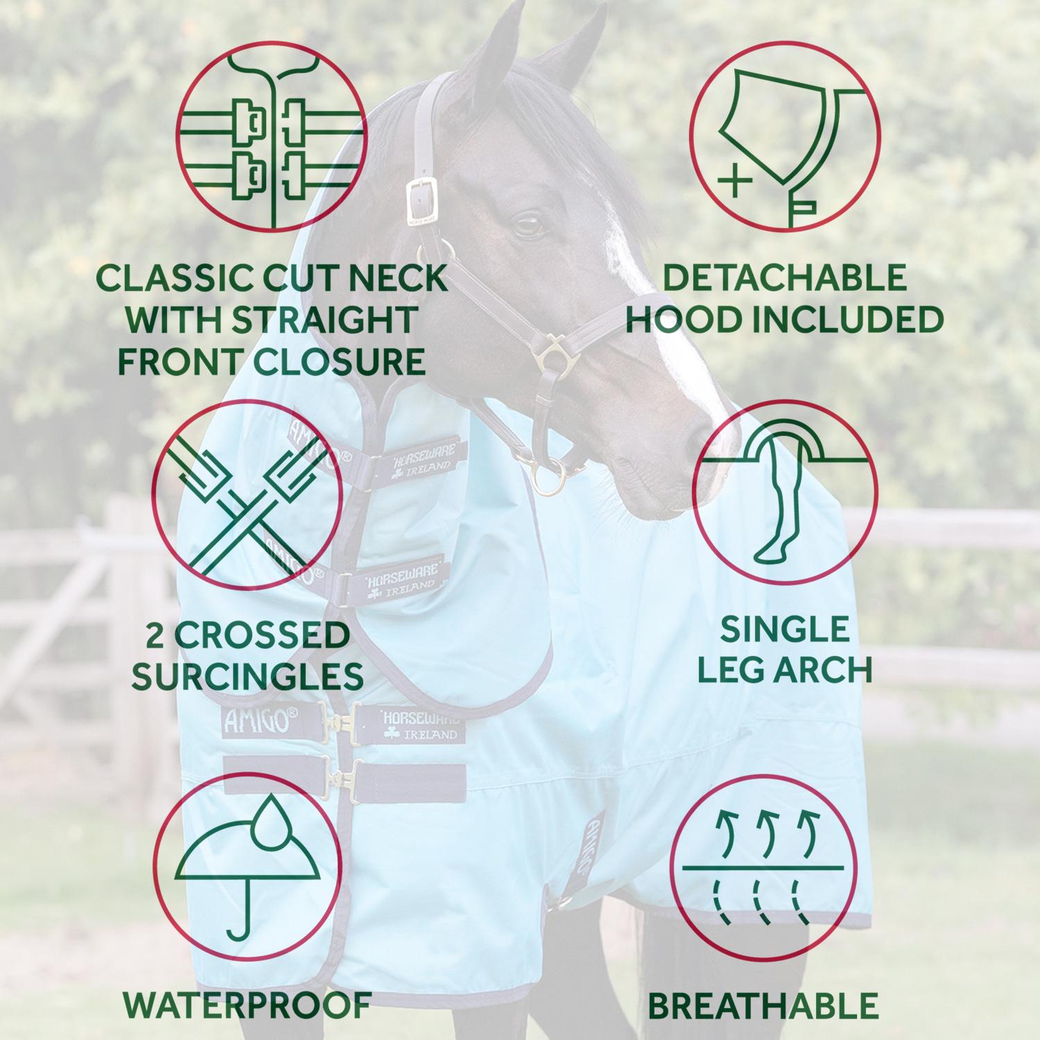 Amigo Hero 600 denier ripstop är ett regntäcke med ett andningsbart och vattentätt yttermaterial av polyester som är tillverkad i krysslagt tyg för att förhindra att det slits sönder när hagkompisen biter och sliter i täcket.
