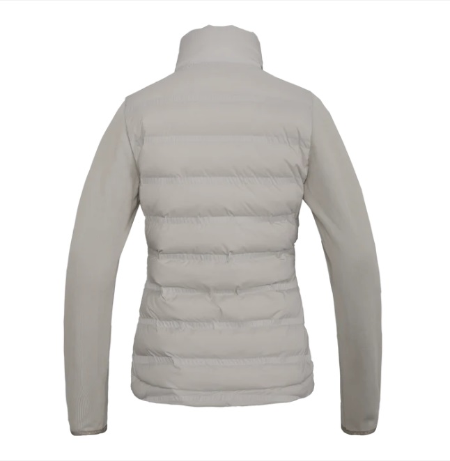 En feminin hybridjacka med ståkrage, dekorativa sömmar och lätt fodring runt överkroppen och ärmar i stretchigt tyg.