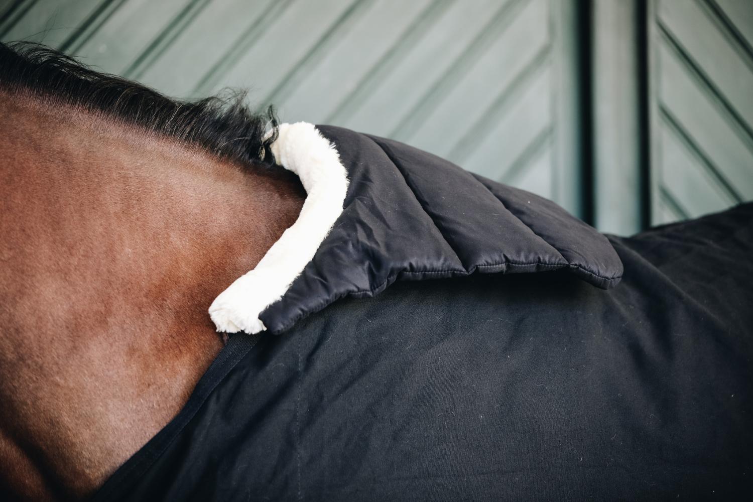 Mjukt bogskydd för vinterbruk från Kentucky med extra mjuk fuskpäls på insidan och syntetull närmast halsen. Kan även använda vid manken för att skydda hästen mot skav.