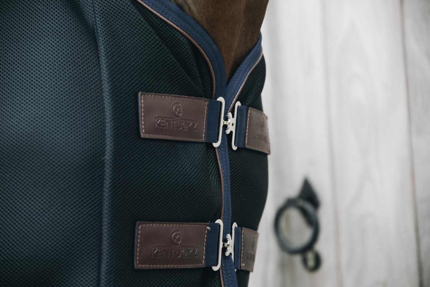 3D Spacer Cooler Sheet från Kentucky Horsewear är ett superlätt och multifunktionellt täcke som kan användas för flera olika ändamål, till exempel transport, nedkylning, flugtäcke eller i kombination med andra täcken som liners. Det går även att använda under tiden din häst torkar. Det unika 3D Spacermaterialet har en honeycombstruktur vilket gör att det transporterar bort fukt väldigt effektivt samtidigt som #D spacer-materialet är avgränsat med perforerad stötdämpande gel som skyddar hästen.