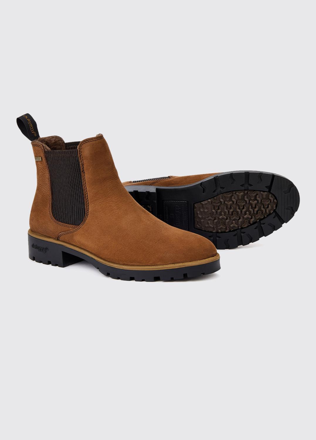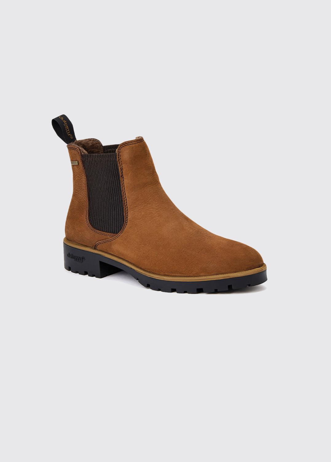 Kilcommon Chelsea är den ideala skon i vinter. Eleganta, enkla linjer, perfekta för en snygg stil. Stötdämpande och greppande sulor. Skorna är vattentåliga och har god andningsförmåga. Helfodrade i fuskpäls för att hålla fötterna varma och bekväma. Avtagbar vadderad fotbädd. Räfflade samt elastiska sidokilar för bra passform. Subtil Dubarry-logotyp.