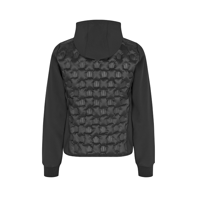 En tunnare men härligt vadderad jacka från Kingsland. Denna sköna vår och höstjacka är en perfekt ridjacka de lite kyligare vårdagarna. Den är vadderad över bröst och rygg men tunnare över armar och i sidorna för ökad rörlighet att mer luftig desig. Denna hybridjacka har en lite boxigare passform och en fast luva. De tunna ärmarna avslutas med breda muddar i resår. Jackan har tre fickor som alla stängs med dragkedja, en inre och två nertill framme på jackan. Den har dirskret Kingsland logga broderad på vänstra ärmen och ett stilrent kantband nertill med Kingsland text på. Yttermaterialet stoppar vind från att ta sig igenom och är dessutom vattenavvisande så du är skyddad om regnet skulle dra fram.