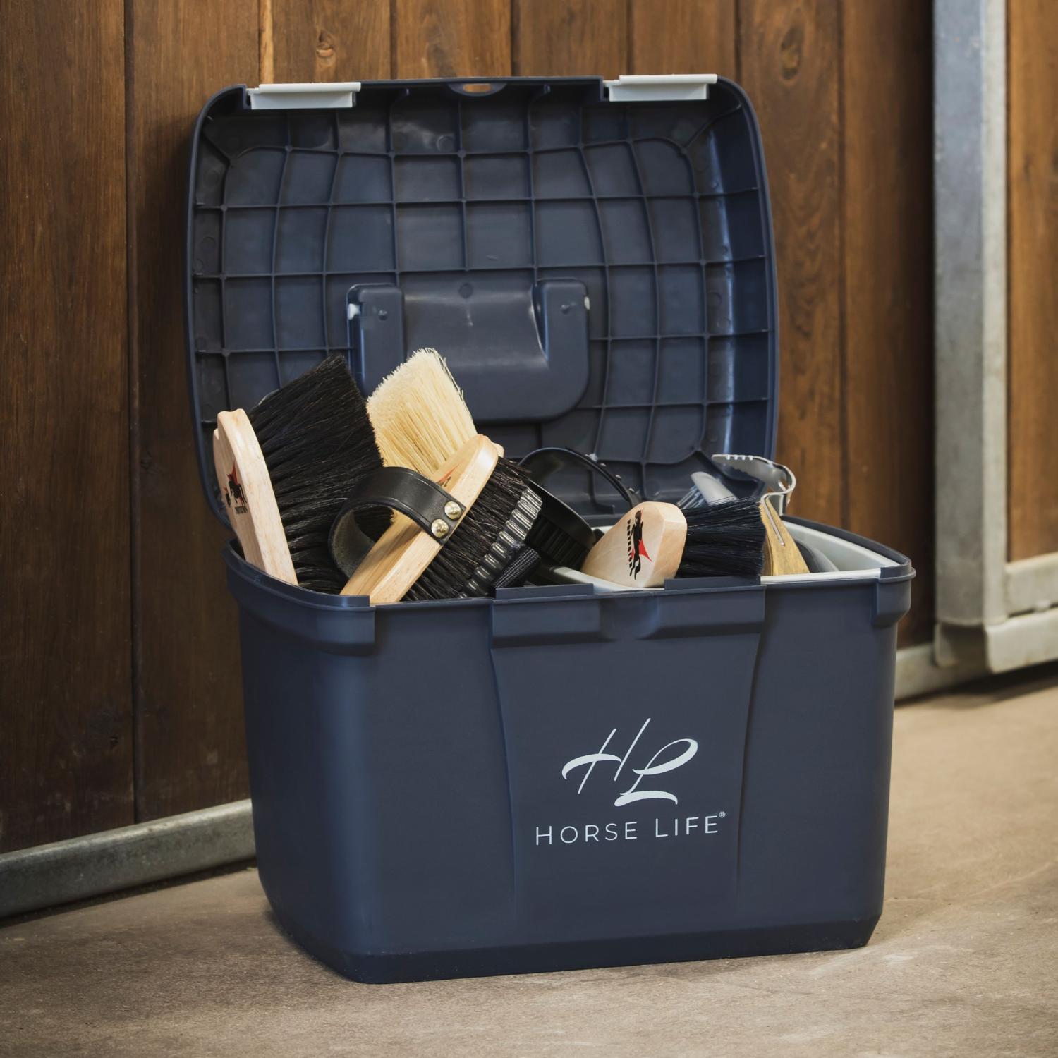 Ryktlåda för grooming tillverkad i tåligt material med bärhandtag.
