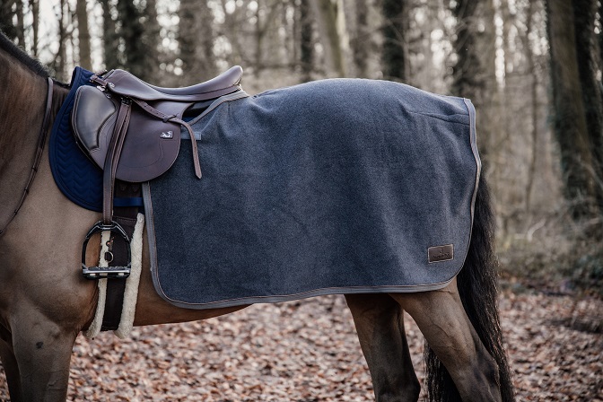 Quarter Rug Heavy Fleece är tillverkad i samma tyg som Kentuckys populära Fleece Rug Heavy. Det ger den samma utseende och känsla som en ullmatta, utan de olägenheter som detta tyg kan medföra. Under uppvärmningen kommer Quarter Rug Heavy Fleece att hålla din häst varm. När den kyls ner kommer den att låta svetten avdunsta, vilket gör att din häst torkar snabbt. Denna Quarter Rug Heavy Fleece har två kardborreknäppningar för att fästa på sadeln, samt en stjärtsnöre. Kentucky-logotypen i brunt konstläder ger den en mycket snygg look. Täcket är maskintvättbar i 30°, ingen torktumlare.