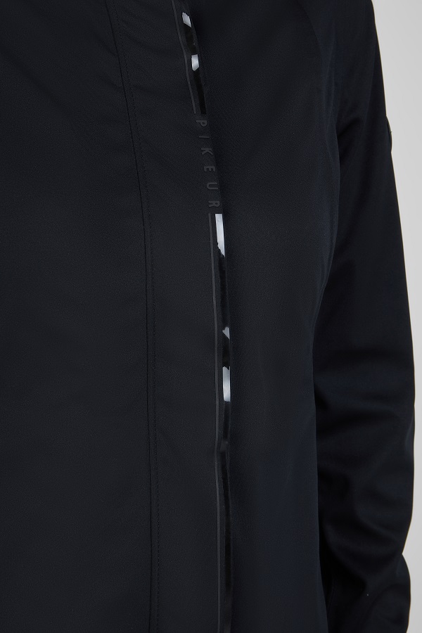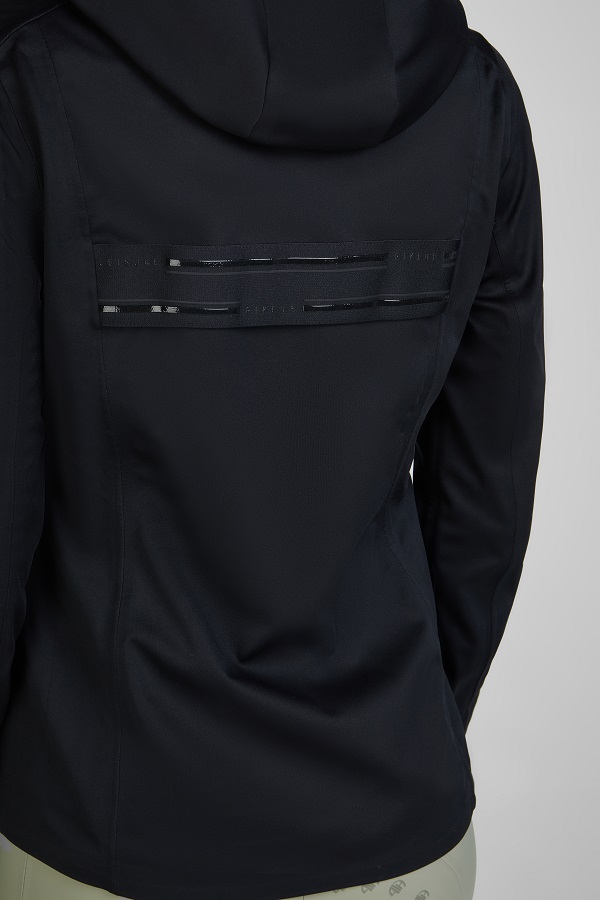 Höftlång modell med rundad kant baktill höjer komforten och skyddar vid vind och regn. Två fickor framtill, även dem med tejpade vattentäta dragkedjor. Stor fast huva med dragsko, som enkelt hålls på plats på ryggen med hjälp av små magneter. Så du slipper att luvan skumpar på ryggen vid ridning. Bak på ryggen finner du en smart öppning under de snygga Pikeur-detaljerna, denna finns för att öka ventilationen ännu mer, utan att du riskerar att vatten letar sig in.