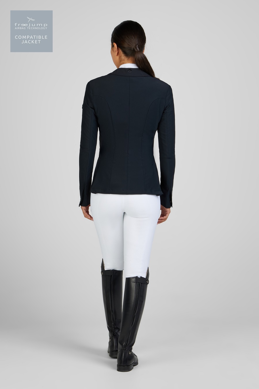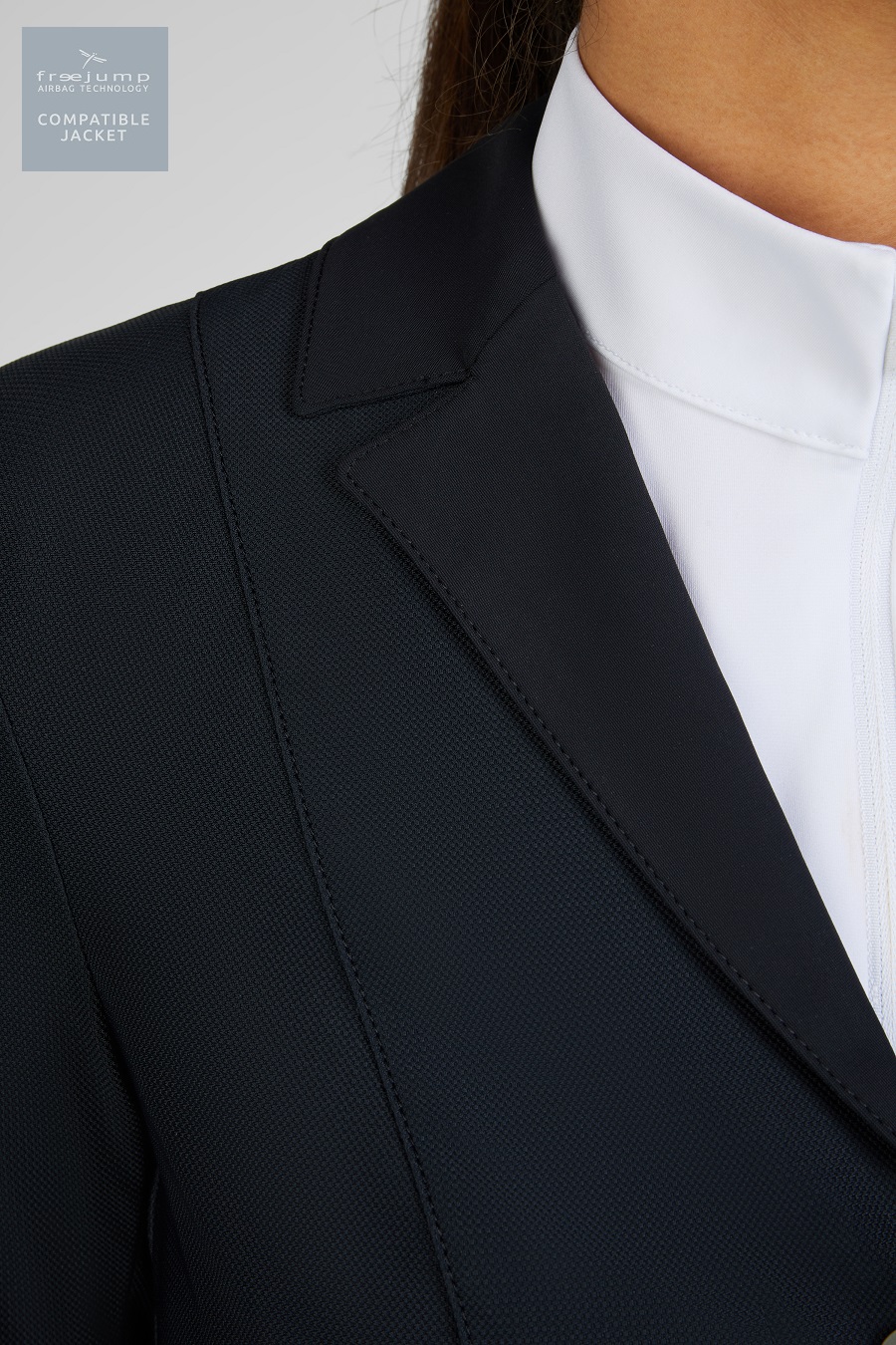 Äntligen en tävlingskavaj som är kompatibel med Freejumps Airbagvästar. Unden denna härliga kavaj i mesh från Pikeur kan du säkert och tryggt använda din säkethetsväst med airbag utan att vara rädd för att förstöra kavajen. Den är otroligt stretchig och återfår sin form direkt efter att airbagvästen löst ut.