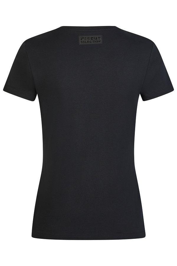 T-shirten är designad med en rund halsringning som ger en tidlös och enkel detalj, samtidigt som den eleganta höjda Pikeur Selection-silikontrycket på bröstet ger en exklusiv känsla. För att addera ännu mer glamour är trycket omgivet av en rad med glänsande strass, vilket skapar ett sofistikerat och trendigt uttryck.