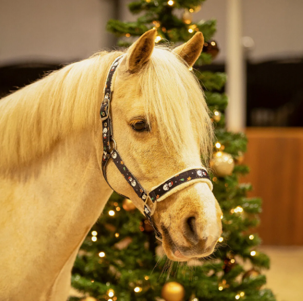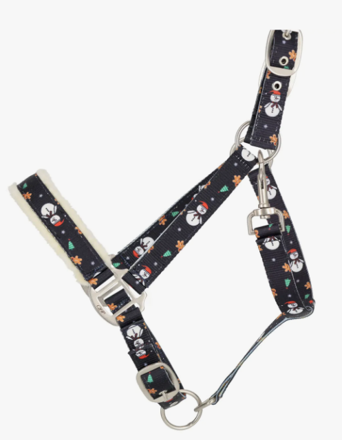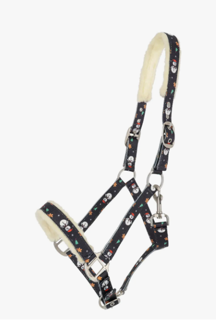 Söt julgrimma från QHP med juligt tomtemotiv. Grimman är designad för att kombinera komfort och funktion för hästen i vardagen. Tack vare en vadderad insida mot kind- och nosrem får hästen ett mjukt, skonsamt kontaktområde som motverkar skav och irritation under längre tid. Yttermaterialet är slitstarkt och lätt att rengöra, vilket gör grimman lämplig för daglig användning i stallmiljö.
