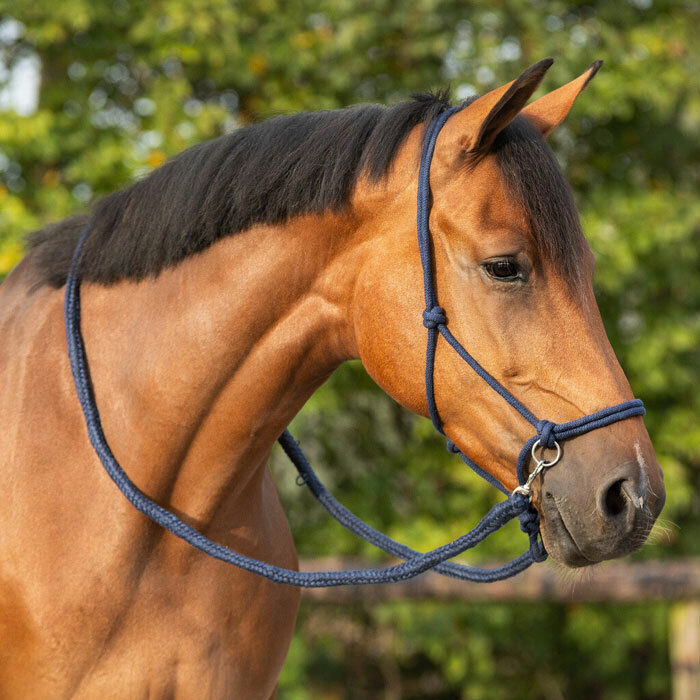 En enkel men praktisk repgrimma i nylon som enkelt går att rida med. Repgrimman fungerar lika bra för markarbete som för bettlös ridning. Grimman har två metallringar på sidorna där du enkelt kan knäppa fast de medföljande reptyglarna-