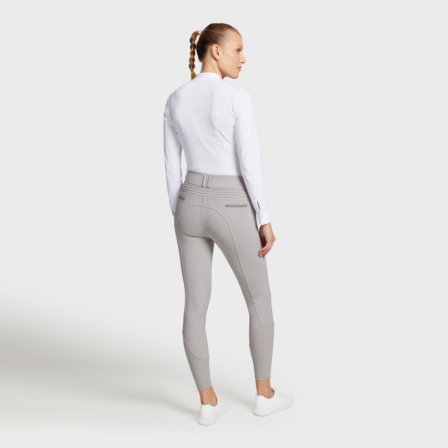 Dessa ridbyxor är definitionen av modernt ridmode. Försedda med full grip för bättre grepp och stabilitet i sadeln. Utsmyckade med strass baktill samt på logotypen på låret. Vackra veckade detaljer baktill. En elastisk och bekväm hög midja gör denna till en favorit bland ryttare över hela världen. Temperaturreglerande teknologi som transporterar bort fukt och håller huden torr och bekväm hela dagen. En praktisk dold telefonficka. Komprimerade vad-område för ökad blodcirkulation samt för muskelstöd. Ridbyxorna är dessutom EPD-certifierade vilket gör dem miljövänliga.