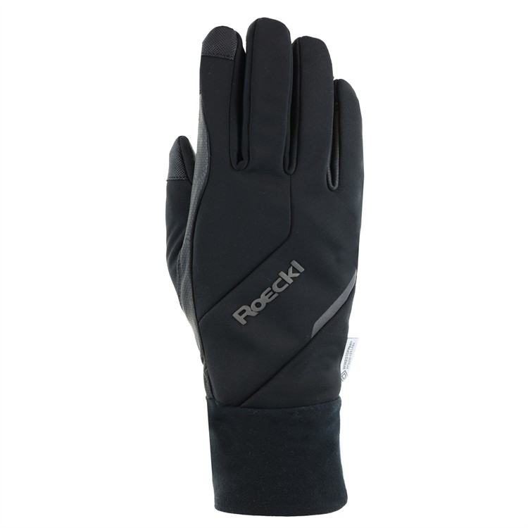 En annan höjdpunkt är den smala konstruktionen i mudden med ett elastiskt band som sträcker sig långt över handleden och ser till att värmen stannar inne i handsken. Eco-foder i återvunnen polyester och en knapp i mjuk Eco-stretchfleece gör resten för att hålla kylan borta. WHEATON är TOUCHSCREEN COMPATIBLE vilket innebär att den helt enkelt kan sitta kvar på när du använder din smartphone. Kommer i klassisk svart med reflekterande designelement och Roeckl Sports-logotyp.