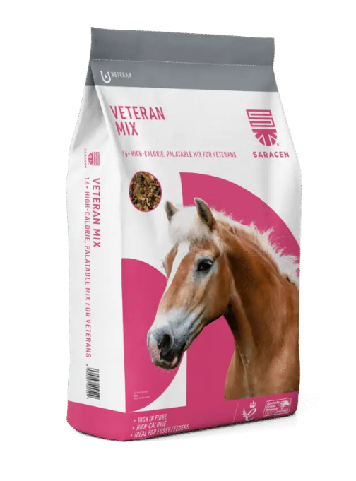 Veteran Mix är en högkvalitativ, mycket lättsmält musli som är speciellt framtagen för den äldre hästen. Saracen Horse Feeds Veteran Mix var det första fodret på marknaden som var specialdesignat för att möta de näringsmässiga krav och behov den äldre hästen ställer på sitt foder.