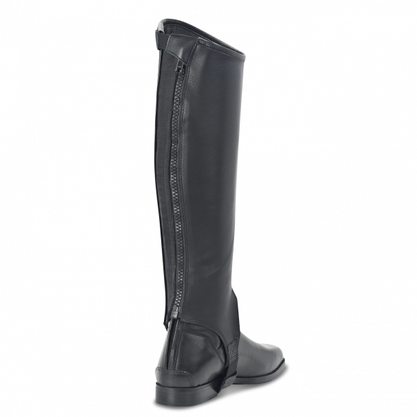 Mycket bekväma elastiska och anatomiskt skurna short chaps för barn. Konstläder med en slät och fin finish, knäpps med dragkedja och tryckknapp.
