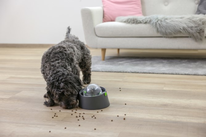 Stimulera din hund och låt den jobba för maten med denna 3-i-1 matskål. En matskål, en boll och en slickplatta. Finns flera olika sätt att använda den på för att sysselsätta ditt djur eller om hunden brukar äta väldigt fort. Slickplattan hjälper till med ett långsamma foderintag och slickandet hjälper till att minska stress. Öppning på bollen så du lätt kan stoppa ner foder eller hundgodis. Gummi under matskålen så att den inte halkar iväg.