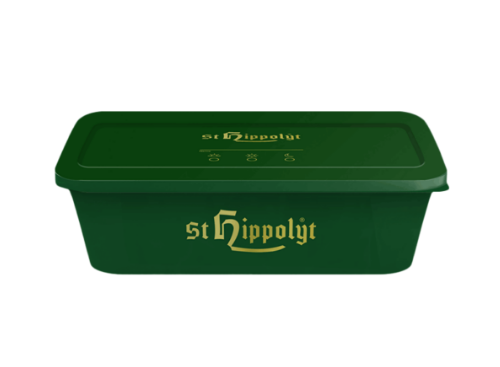 Praktiskt och snygg foderlåda från St Hipoolyt. Staplingsbar och lätt att fylla i på locket vilket mål det är som ligger i lådan.