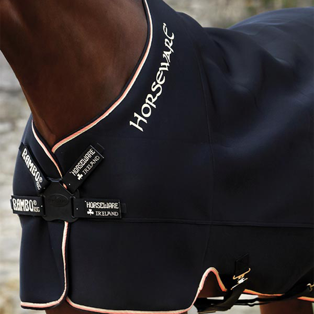 Rambo Airmax Cooler är ett täcke med dubbla egenskaper. Den håller både din häst varm i kallare väder med tillåter ändå maximalt luftflöde vid varmare temperaturer. Tyget är gjort av en slitstark polyester och har en mjuk absorberande insida som transporterar bort fukt. Detta täcke är mycket bra för resor och tävlingar då den har en slät utsida som stöter bort spån och hö och håller hästen snygg. Det stängs med hjälp av en V-disc och har främre benbågar för en bekväm passform, har även en kryssmaggjord.