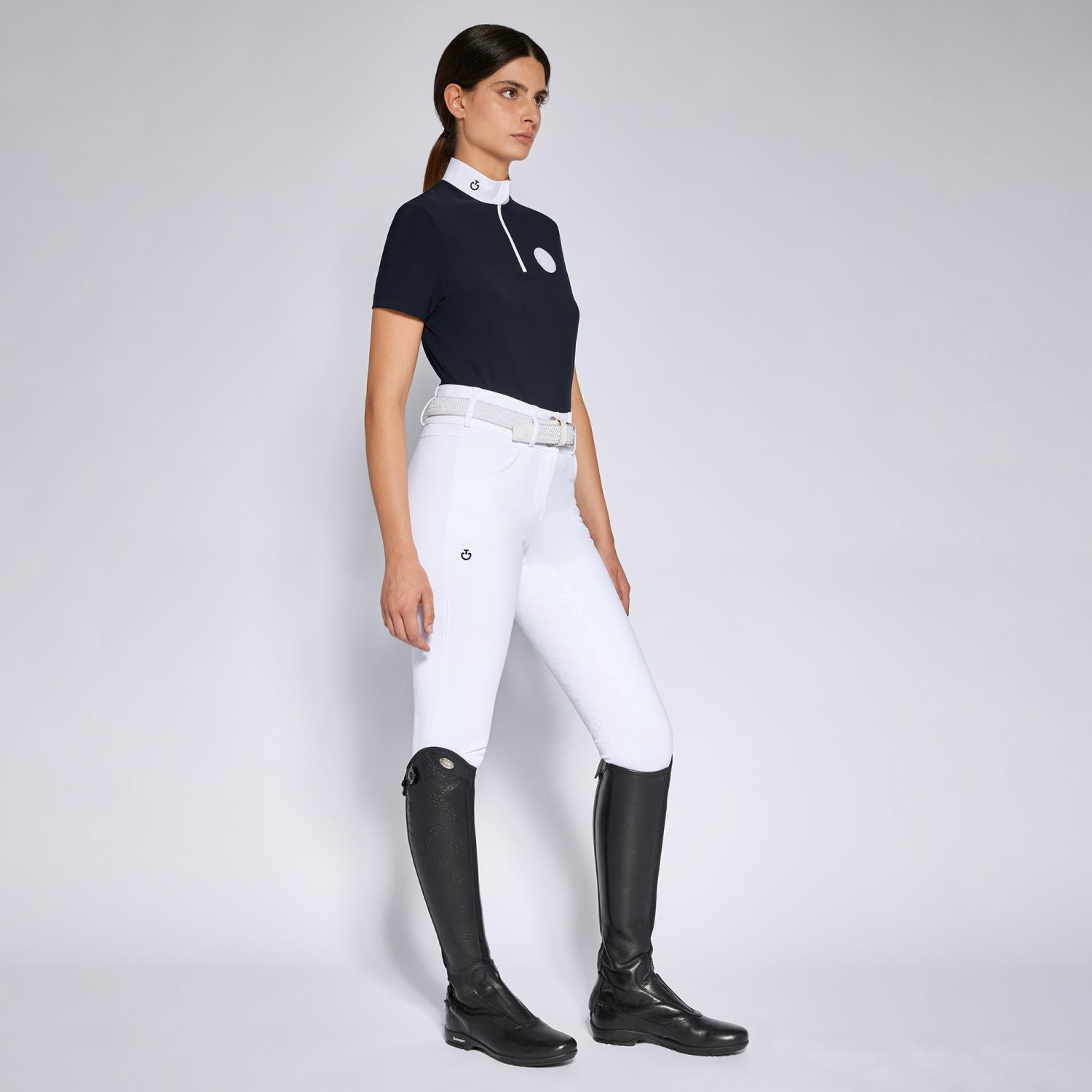 Tävlingsblus från Cavalleria Toscana som har både stil och funktionalitet. Tillverkad av högpresterande tekniskt jerseymaterial. Denna pikétröja garanterar oöverträffad komfort, flexibilitet och en otrolig passform. Med korta ärmar är den perfekt för tävling i varmare grader då den effektivt håller ryttaren sval och smidig under hela tävlingen.