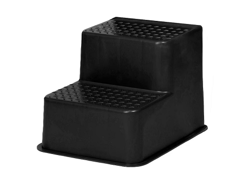 Solid uppsittningspall i tvåstegsmodell. Perfekt pall eller trappa att ha i ridhuset, på ridbanan eller i stallet.