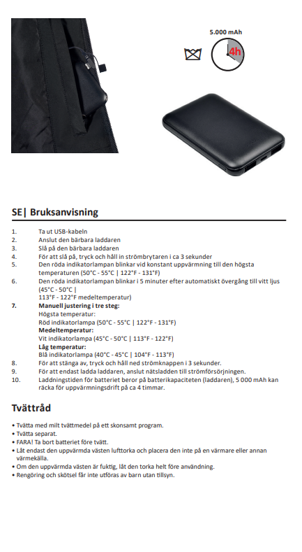 Västen är både vindtät och smutsavvisande, vilket gör den perfekt för utomhusbruk. De strategiskt placerade värmezonerna täcker både rygg och framsida, från axlar till midja, för en jämn och omslutande värme som verkligen märks.
