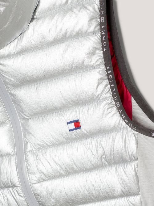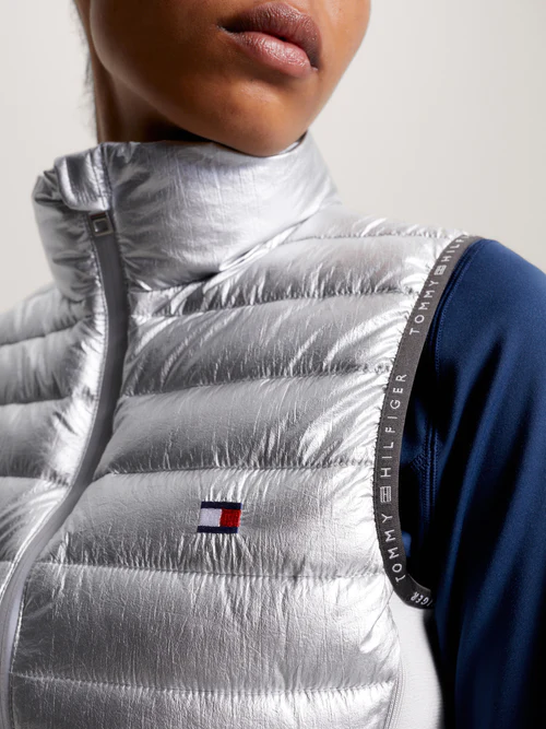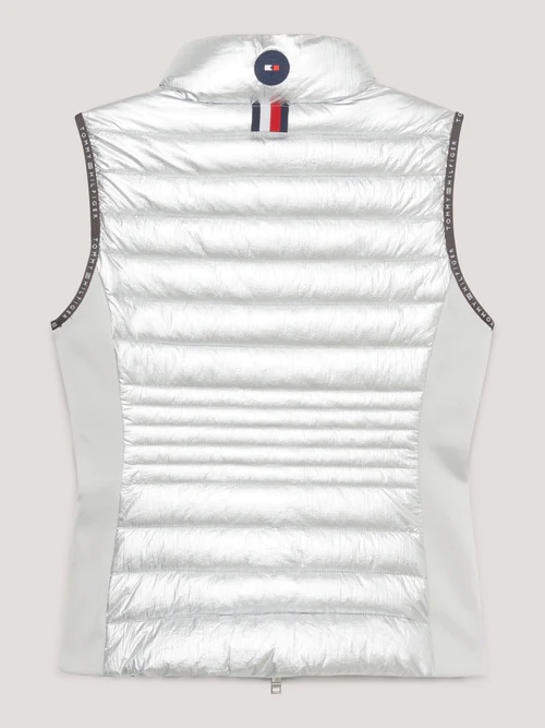 En sportig och vadderad väst från Tommy Hilfiger. Västen har stretch i sidorna för extra rörelsefrihet och bekvämlighet i sadeln, samt vindtäta egenskaper. Logotyp vid ärmarna och ett reflekterande logotyptryck framtill på bröstet. Även dragkedjan är gjord med en reflekterande finish för att fullborda looken.