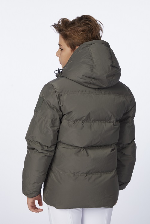 Insidan är fodrad med mjuk, fluffig vaddering i 100 % polyester som håller värmen utan att kännas klumpig. Huvan är justerbar med dragsko, vilket gör att den kan anpassas efter väder och behov, och jackan är försedd med en tvåvägsdragkedja som gör den smidig att justera när man rör sig eller rider. Det finns flera praktiska fickor, inklusive stora yttre fickor för kalla händer samt en mindre innerficka – perfekt för att förvara till exempel nycklar eller mobil.