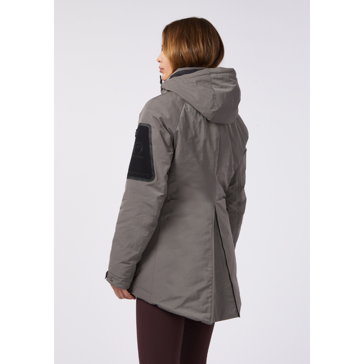 Denna snygga och sportiga ridjacka från Vestrum är ett måste i höst och vinter. Jackan är av parkasmodell och har alltså har en längre passform, är lätt vadderad och är lätt och bekväm att bära. Denna ridjacka är både vatten och vindtät samt har en stor anpassningsbar huva för skydd mot höst och vinterrusket. Passar perfekt som ridregnjacka eller vinterridjacka beroende på hur frusen man är. Två stora fickor framtill med plats för alla dina tillhörigheter. Tvåvägsdragkedja fram och rejäl sprund bak med dragkedja underlättar vid ridning och andra fysiska aktiviteter där man vill ha mer rörelsefrihet. Logotyp hittar du på huvan samt på ärmen på en större armficka som även den stängs med dragkedja.